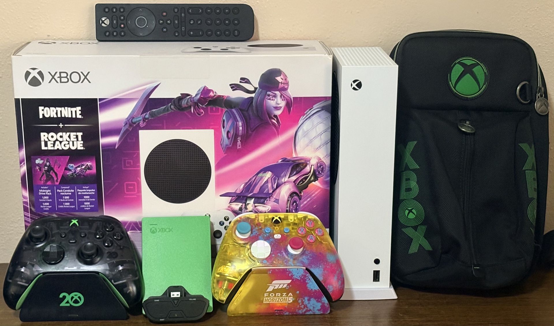 Microsoft Xbox Series S Console with the following: Xbox Console Vertical Stand Xbox Console Remote Controller Special Edition 20th Anniversary Xbox Controller Special Edition 20th Anniversary Charging Stand Special Edition Forza Xbox Controller Special Edition Forza Charging Stand 2TB Xbox External Hard Drive Xbox Controller Headset Adapter Official Microsoft Xbox Series S Travel Bag Everything works perfectly with no issues. Pick up in Lake Mary 32746. Clean, ready, and in good condition.