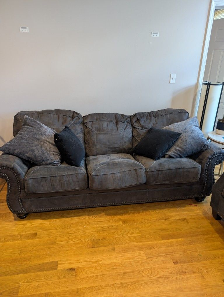 Very comfortable and sturdy couch. No problems or scratches. Some very little pet hair.