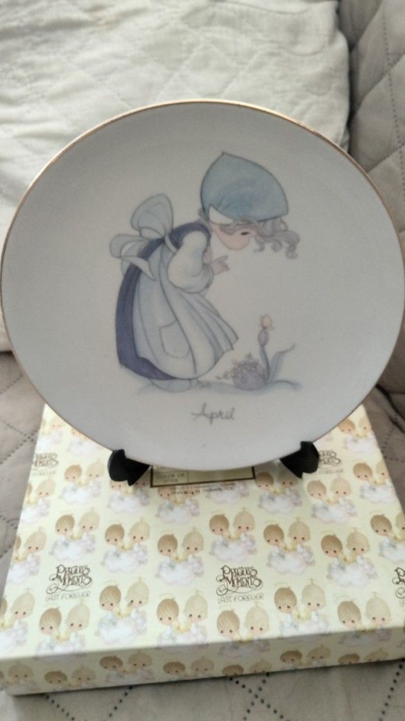 Precious Moments plates July and April Both have their own easel $5 each