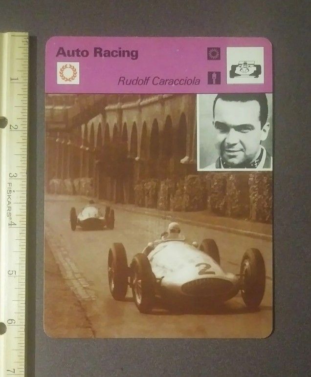 Sportscaster 1977 Rudolf Caracciola Caratch French Grand Prix 1939 Auto Racing Sports Photo Large Over-sized Card HTF Collectible Vintage Italy
