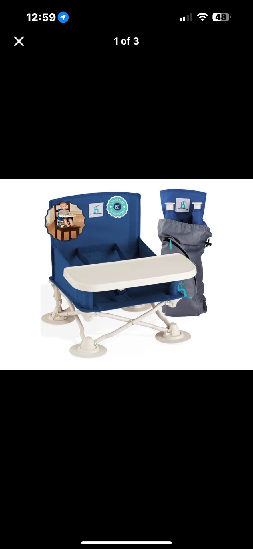 Folding Portable Baby Booster Seat for Dining Table, Camping, Beach, Grandma’s | Tip-Free Design Straps to Kitchen Chairs - Booster Chair