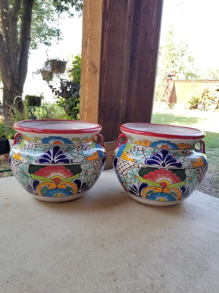Red Rim Talavera, Clay Pots (Planters) Plants. $55 cada una.