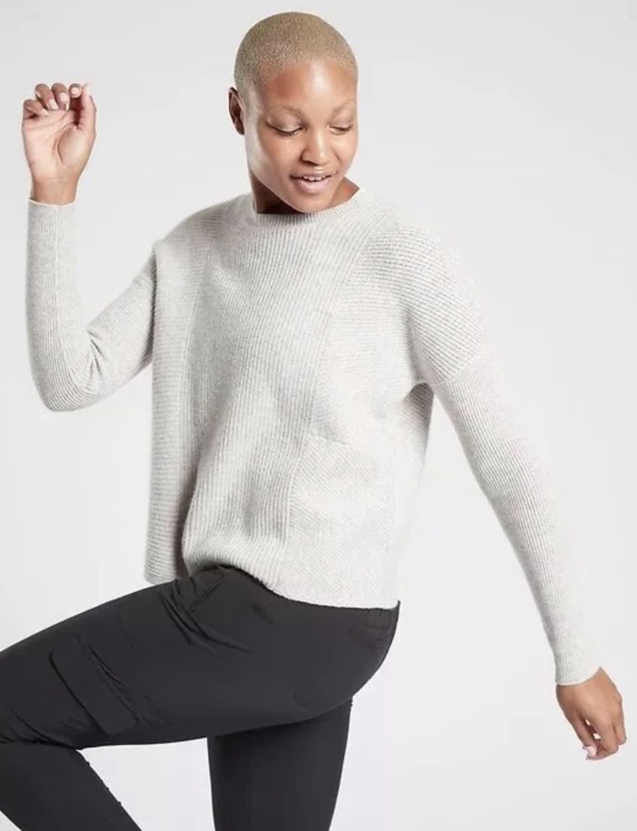 ATHLETA Wool Cashmere Turin Sweater Light Grey Heather Size XS In excellent condition FOR: Commuting, work, and travel FEEL: Wool-cashmere keeps you cozy FAVE: Body-mapped ribbed texture has a flattering effect Wool/Cashmere Hand wash or dry clean. Imported Semi-fitted. Skims easily over the body Paid $178 Asking $65 OBO