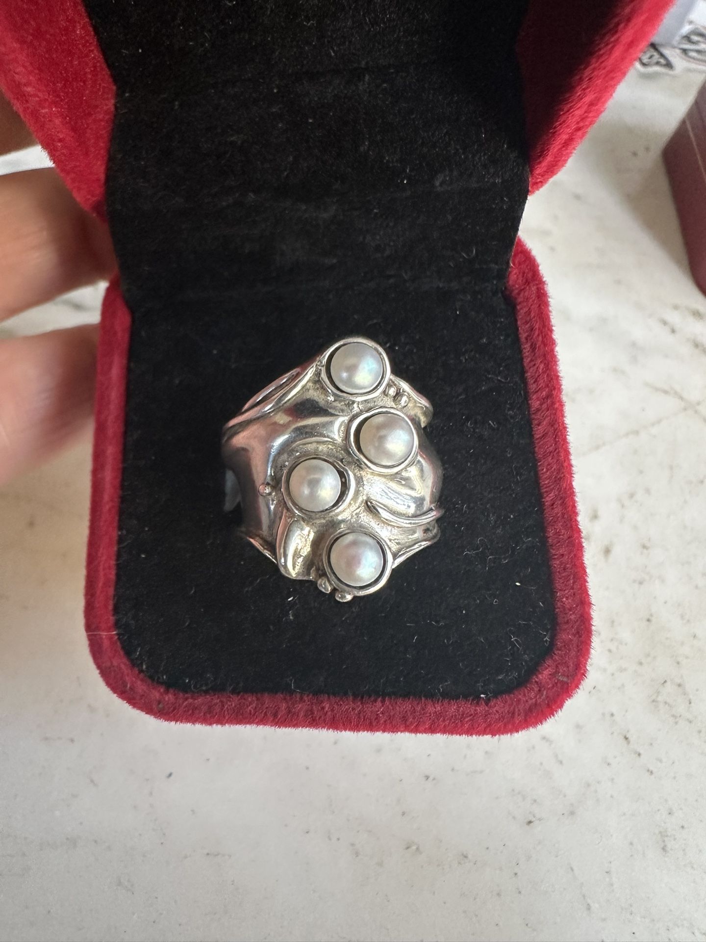 925 Sterling Silver Ring With Genuine Pearls, Beautiful π , Marked 925 , Size 7