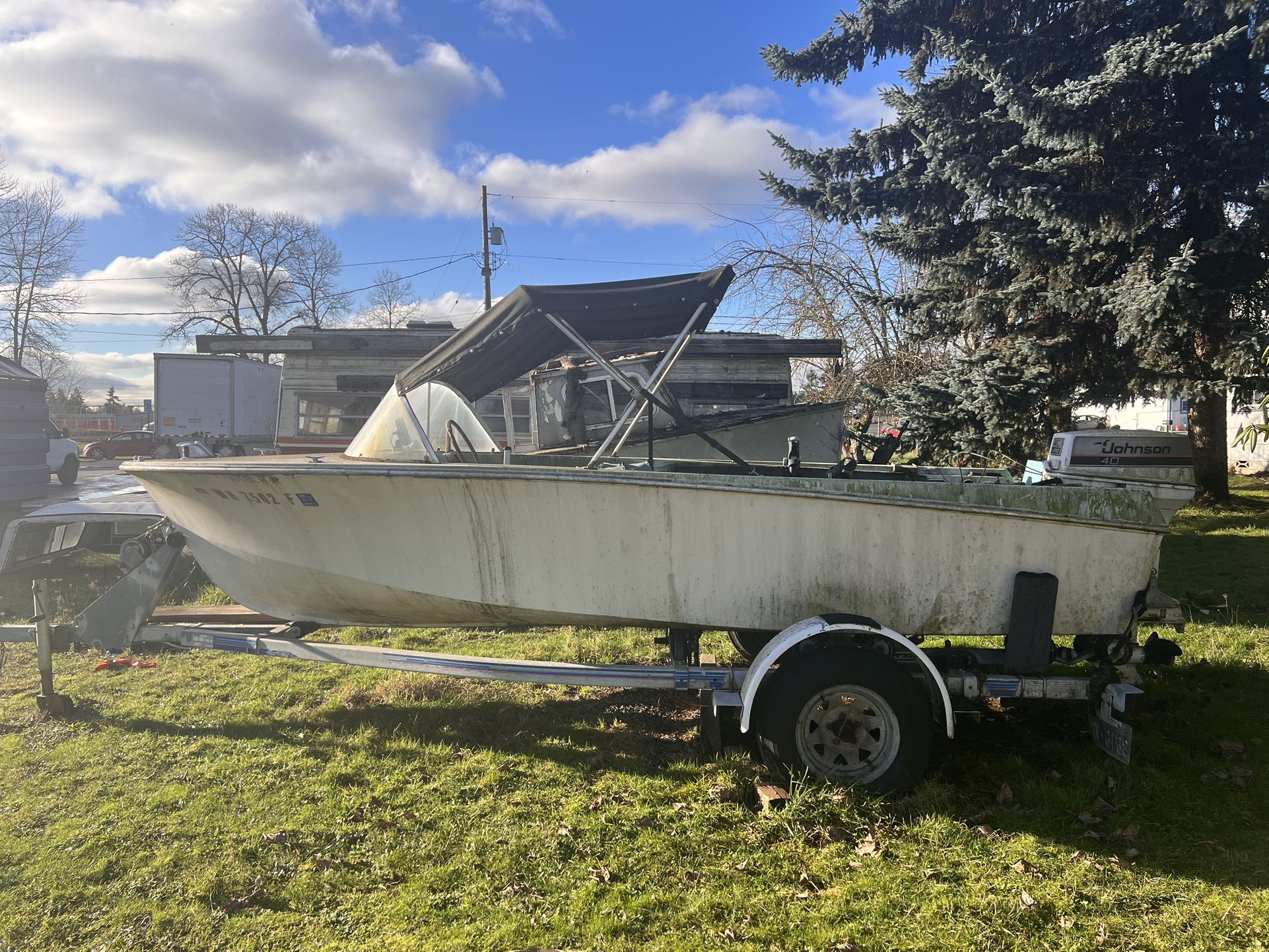 Type: fishing / utility boat • Length: Approx. 16–18 ft • Engine: Johnson 40 HP outboard (not sure if its functional) • Trailer: Single-axle trailer included Features: • Bimini top for sun shade • Windshield • Raised bow deck • Side console steering Condition: Project / fixer-upper. Hull appears intact but dirty from storage. Motor and systems have not been recently tested and may need servicing. Trailer holds the boat well and appears usable. Great for: Lake fishing, river use, crabbing, or as a restoration project. Pick up in Tacoma