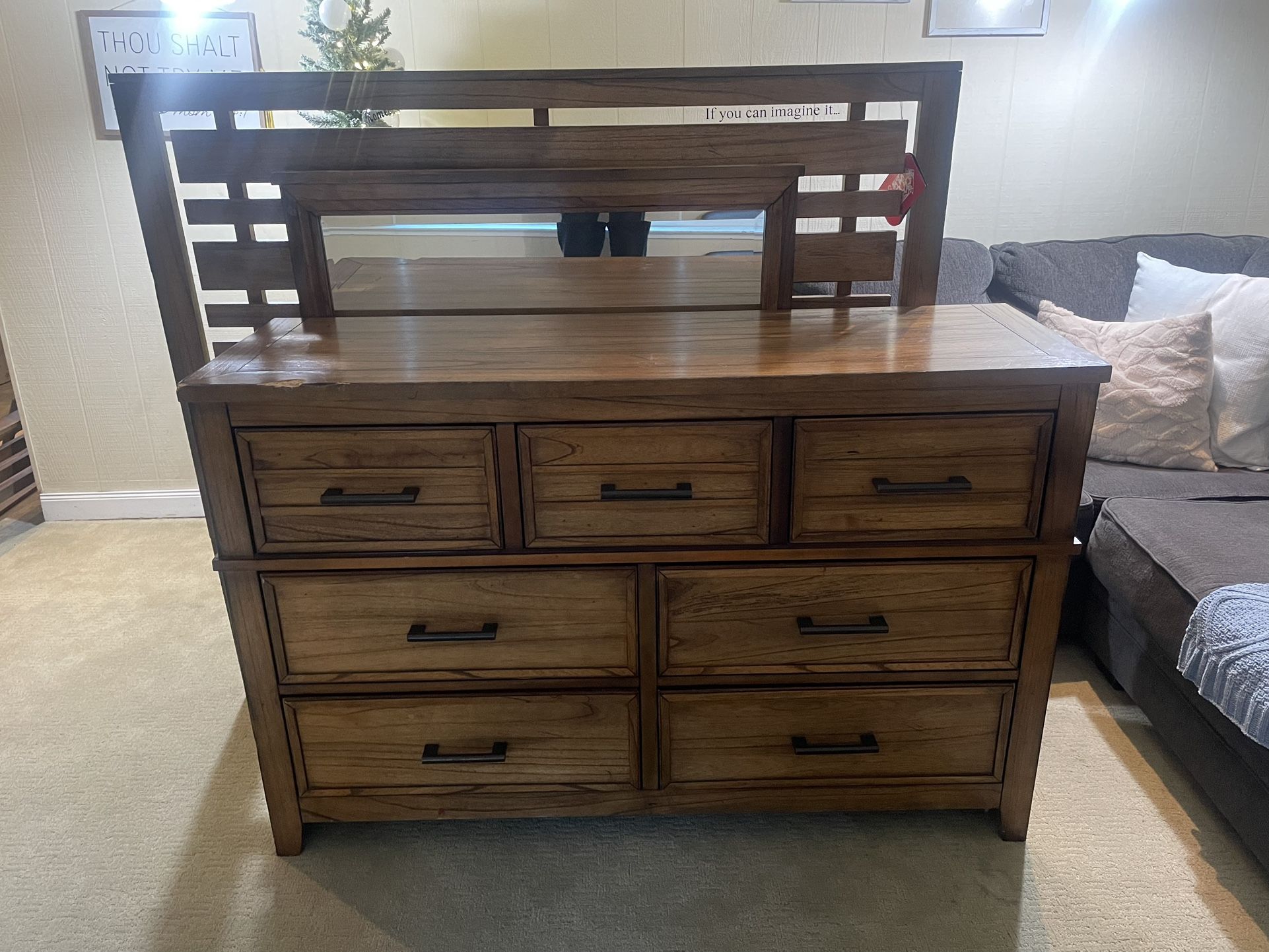Semi new bed frame with dresser and mattress! First come first serve $200! Take it now ! Need gone today