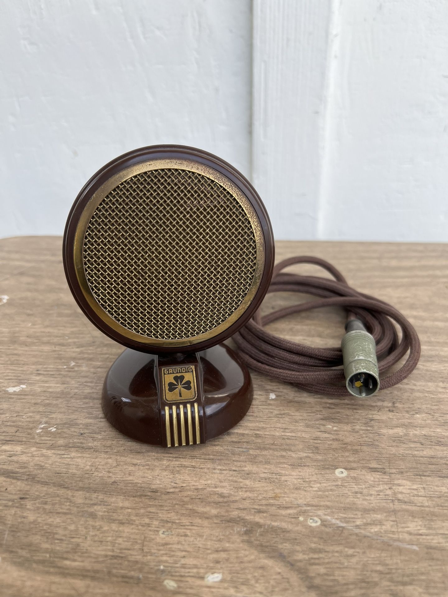 Vintage Grundig microphone, not tested and still an awesome decorative piece. Requires a rare 70v power supply. Everything looks good and is intact.