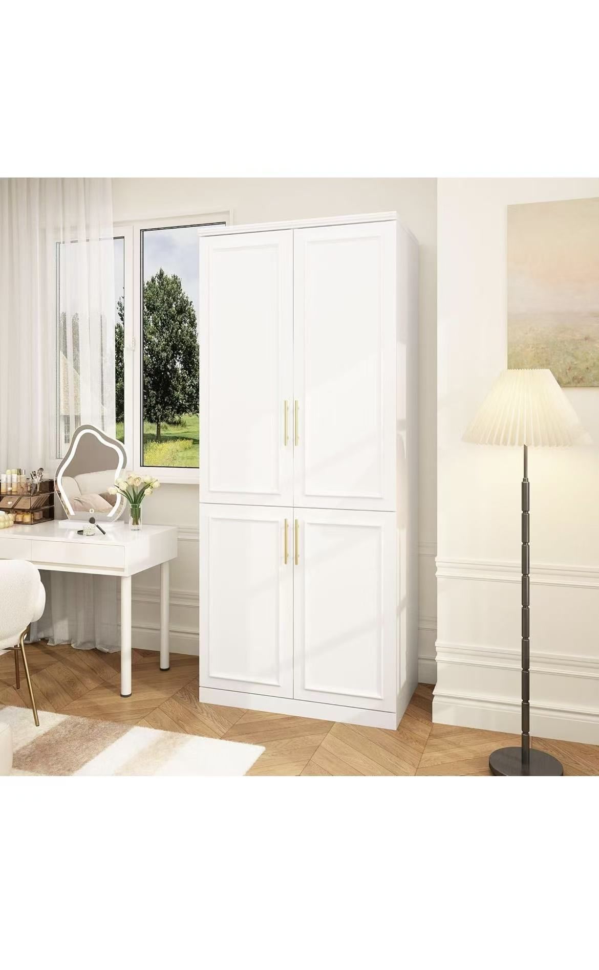 Bedroom Closet Storage Cabinet with Doors and Shelves, Hanging Rod, White Standing Wardrobe Clothes Closet for Bedroom, Armario Storage Cabinet $180