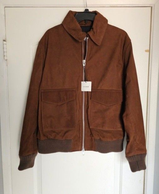 Men's Zara Leather Bomber Aviator Medium Jacket Brown Pilot