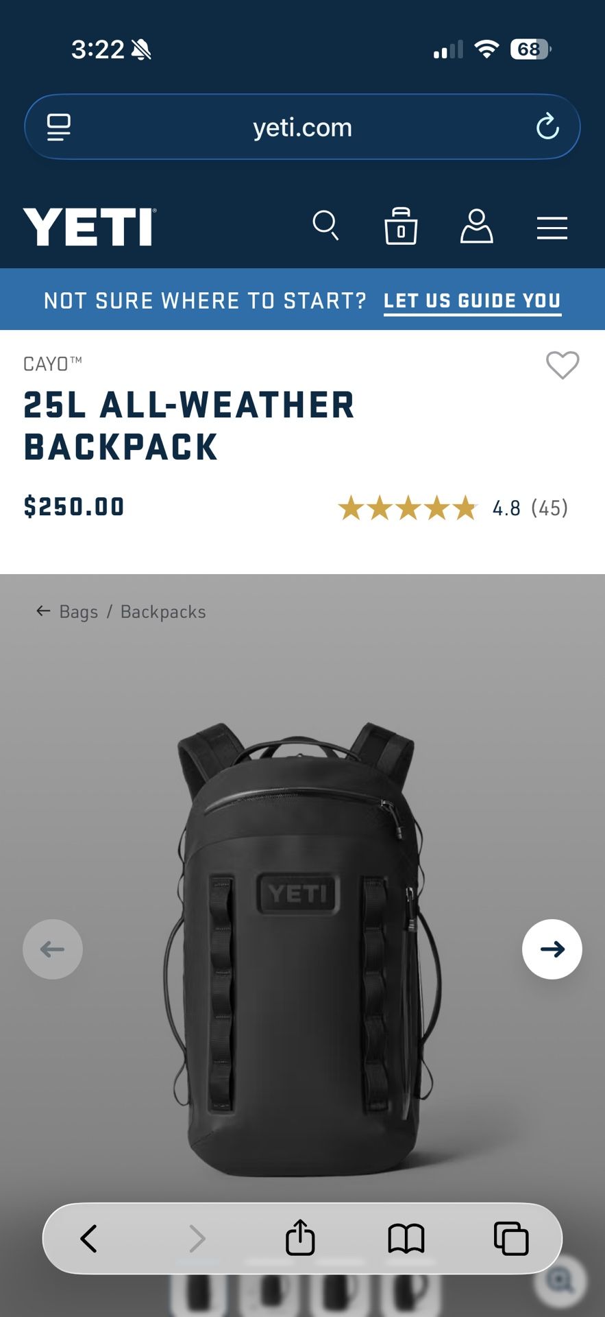 Black Yeti Cayo Backpack 25L- Brand New in Box. Pick up in Hillcrest. MSRP $250