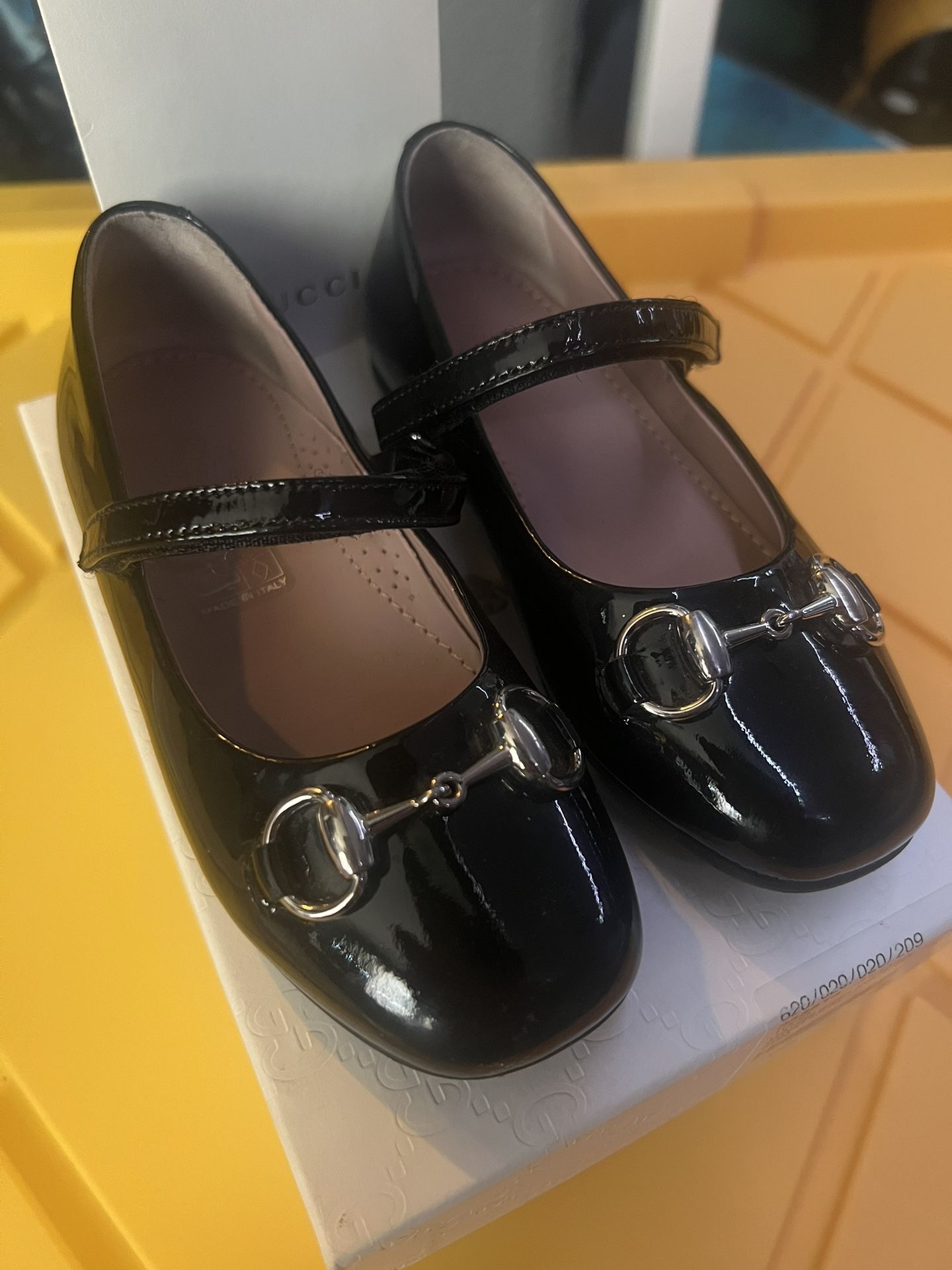 Patent leather Black Toddler's Gucci Ballet Flats with Silver Horsebit Made in Italy EU 25/ 8.5 US