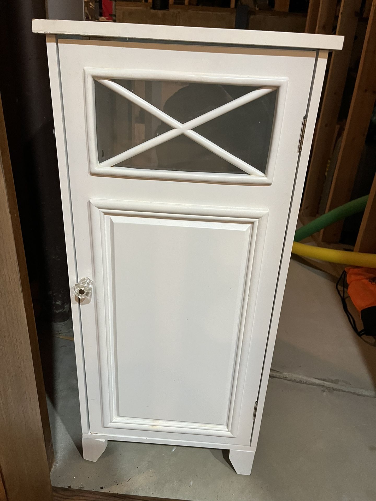 H32x L13xW15 inches. Weight 33.5 lbs. cabinet with one door. Adjustable inner shelves.
