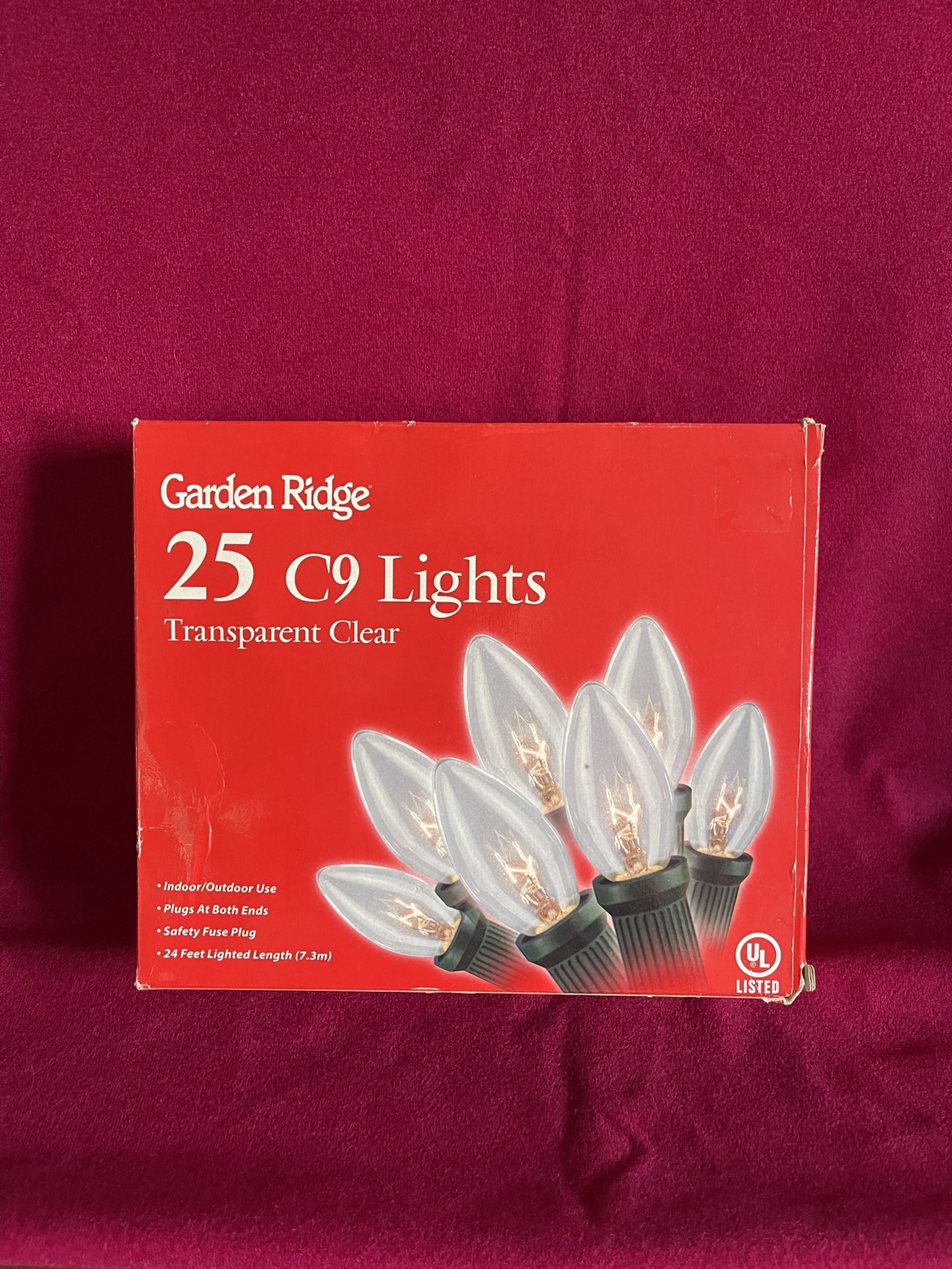 Christmas String Lights Clear White C9 Plug-In Outdoor 24-ft 25-Count