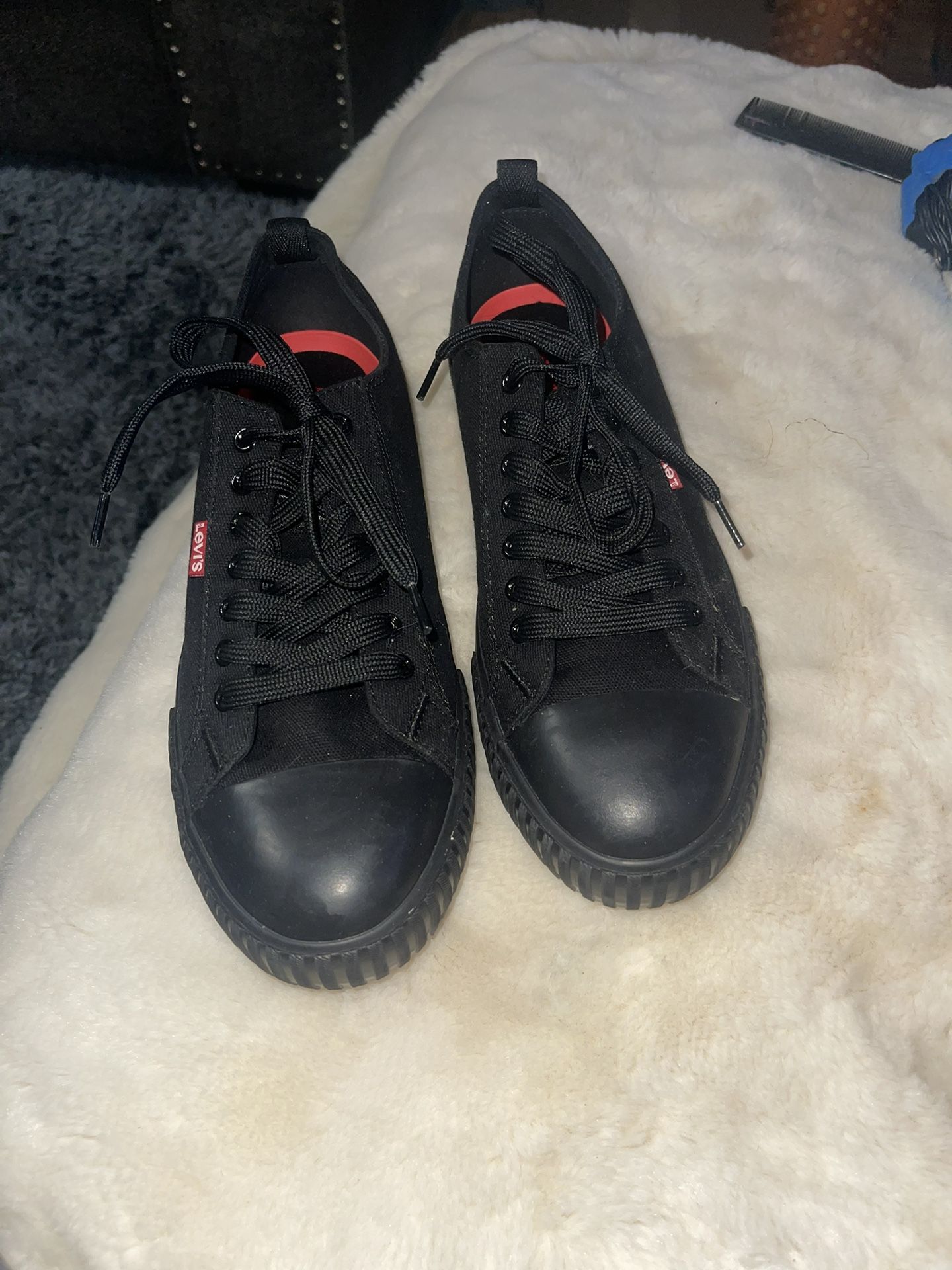 Selling a pair of all black size 9 men’s Levi’s tennis shoes yes brand new $35 cash you pick up