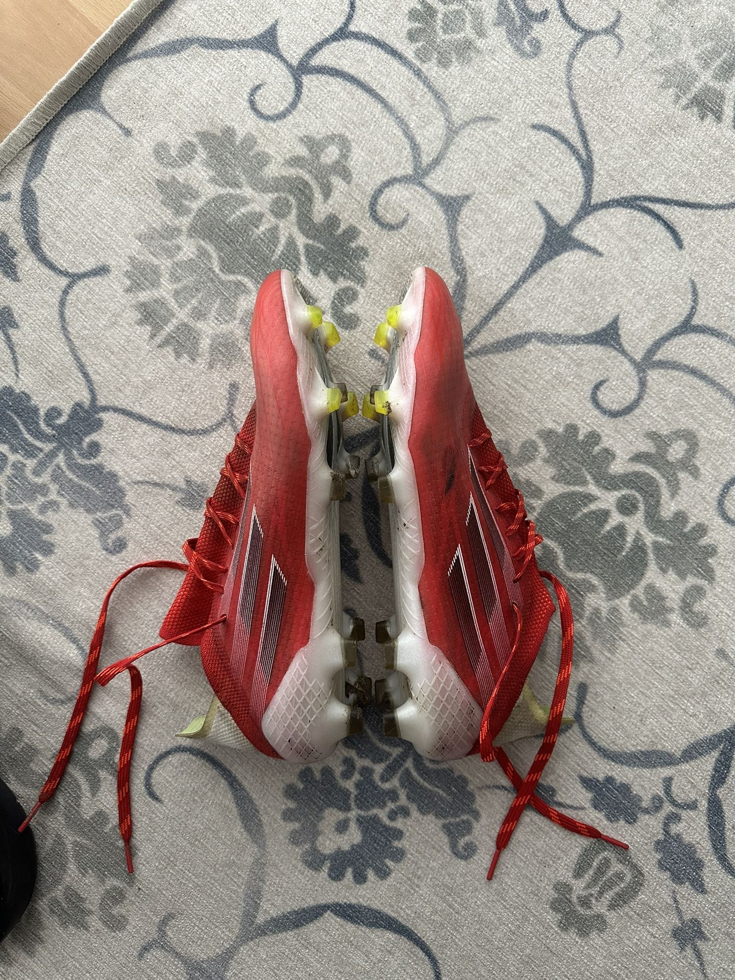adidas X Speedflow.1 FG soccer cleats in a men’s size 10. Have seen the field a few times but they are just too big for me. Cleats are in great shape except for one black marking on the outside left, a few black marks on the inside liner of the left boot and a small chew mark from my pup on the back left stud of the right boot - all pictured.