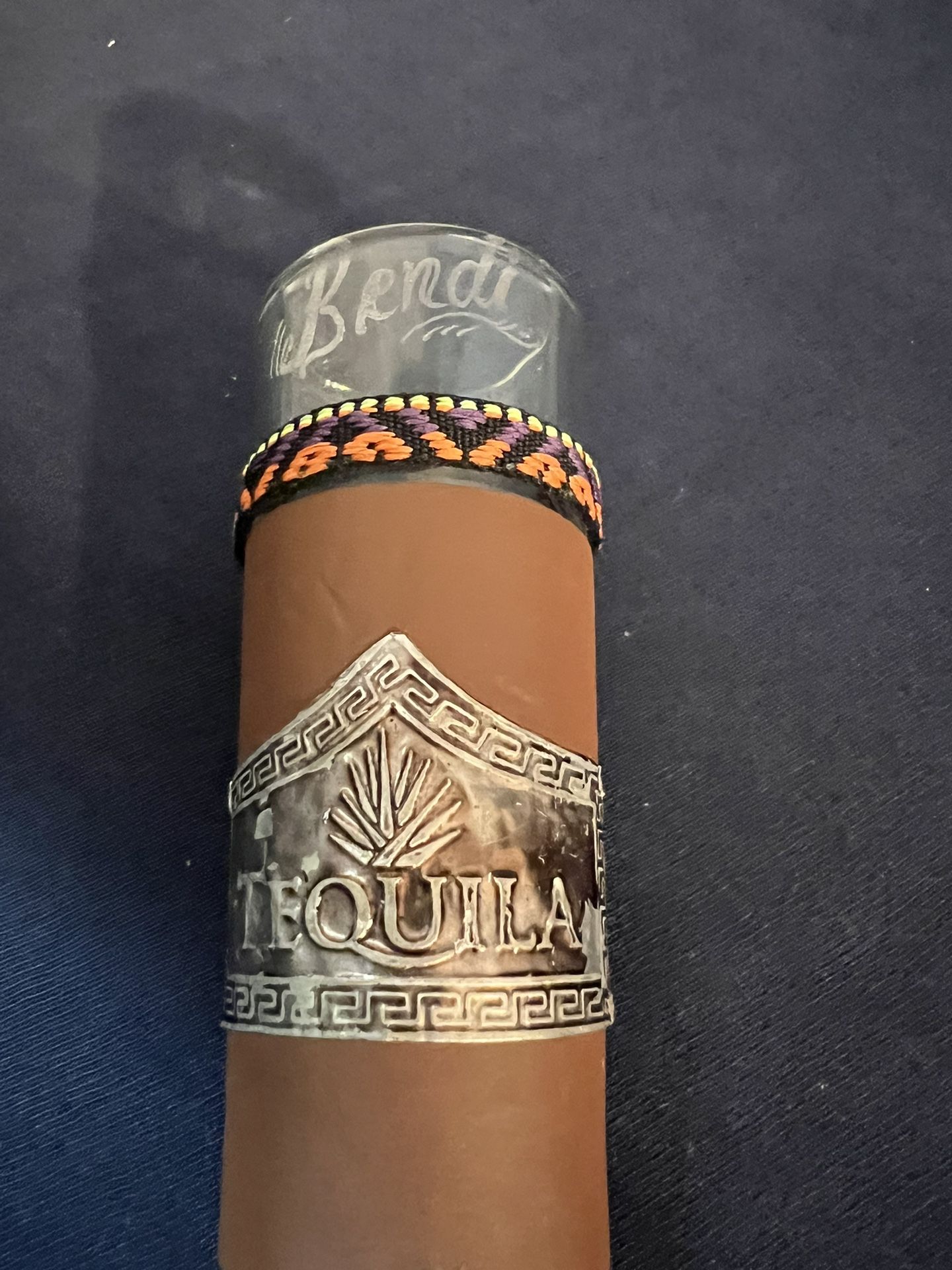 Shot Glass Wrapped In Leather With A Tequila Bendi