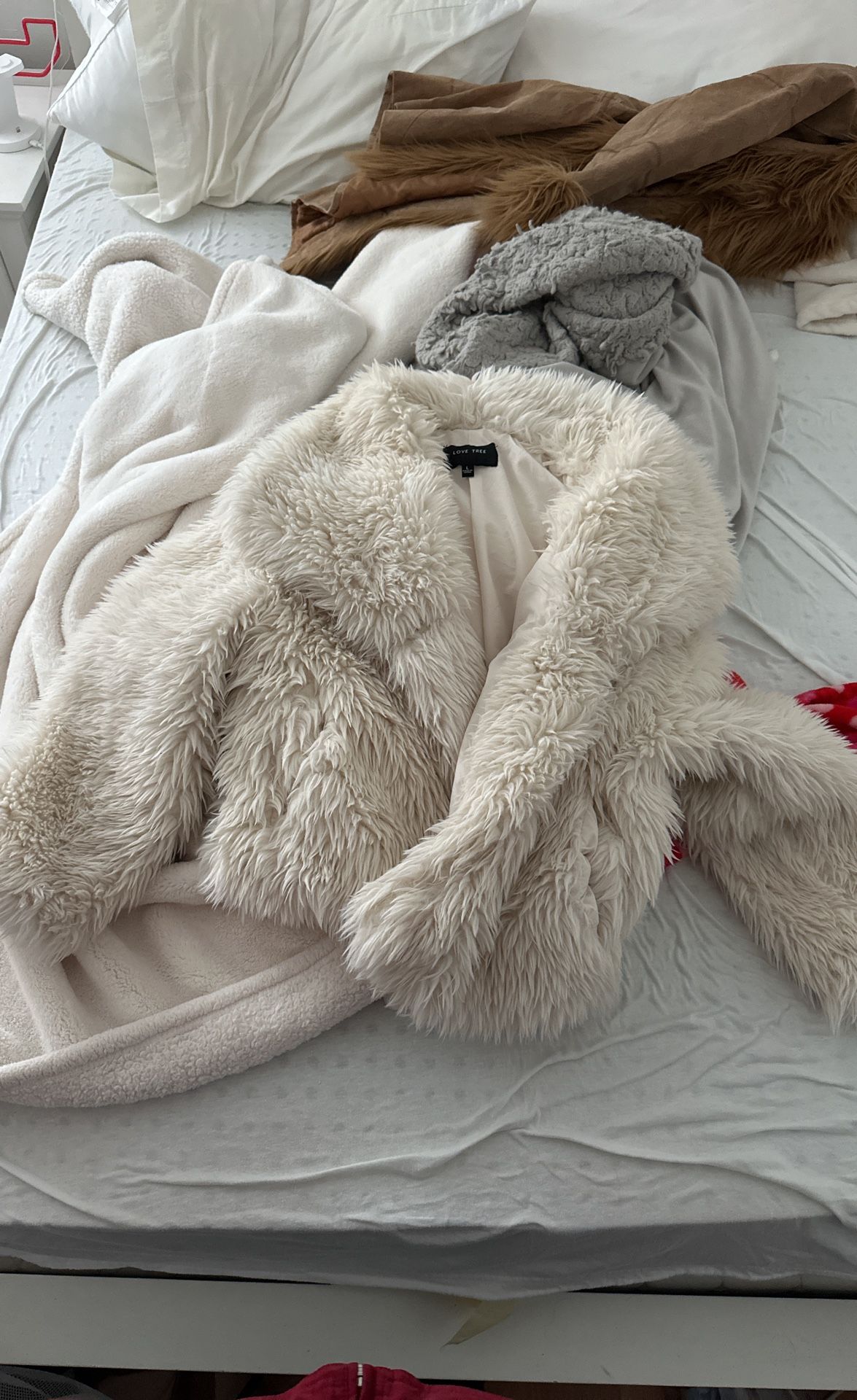 Soft fur coat size large perfect for the cold city. Wore this for girls night and all the men loved it.