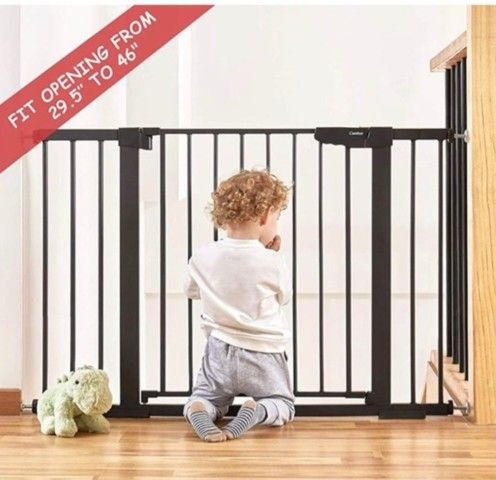 New in box. Opened for pictures Pick up in Tracy. Retail $100 sale $80 New Cumbor 29.7"-46"W X 30.5"Η Pressure Mount Walk-Through Safety Gate, Black With included extension kit, this gate expands 29.7-46" wide, stands 30.5" tall, with a 23.6 inch large opening for ease of use, even while holding a baby. Easy to Install and Protect Your Wall. Featuring a steel frame, the gate installs in minutes. Take down is just as fast. Each of the four pressure mounts can be adjusted to create a stable and secure fit. If you'd prefer to hardware mount, the included wall cups will help you attach it to the wall. 46" Extra wide baby gate to fit stairs or doorways. Sturdy enough to keep your family safe. Ergonomically designed lock. Auto-close lets you feel comfortable
