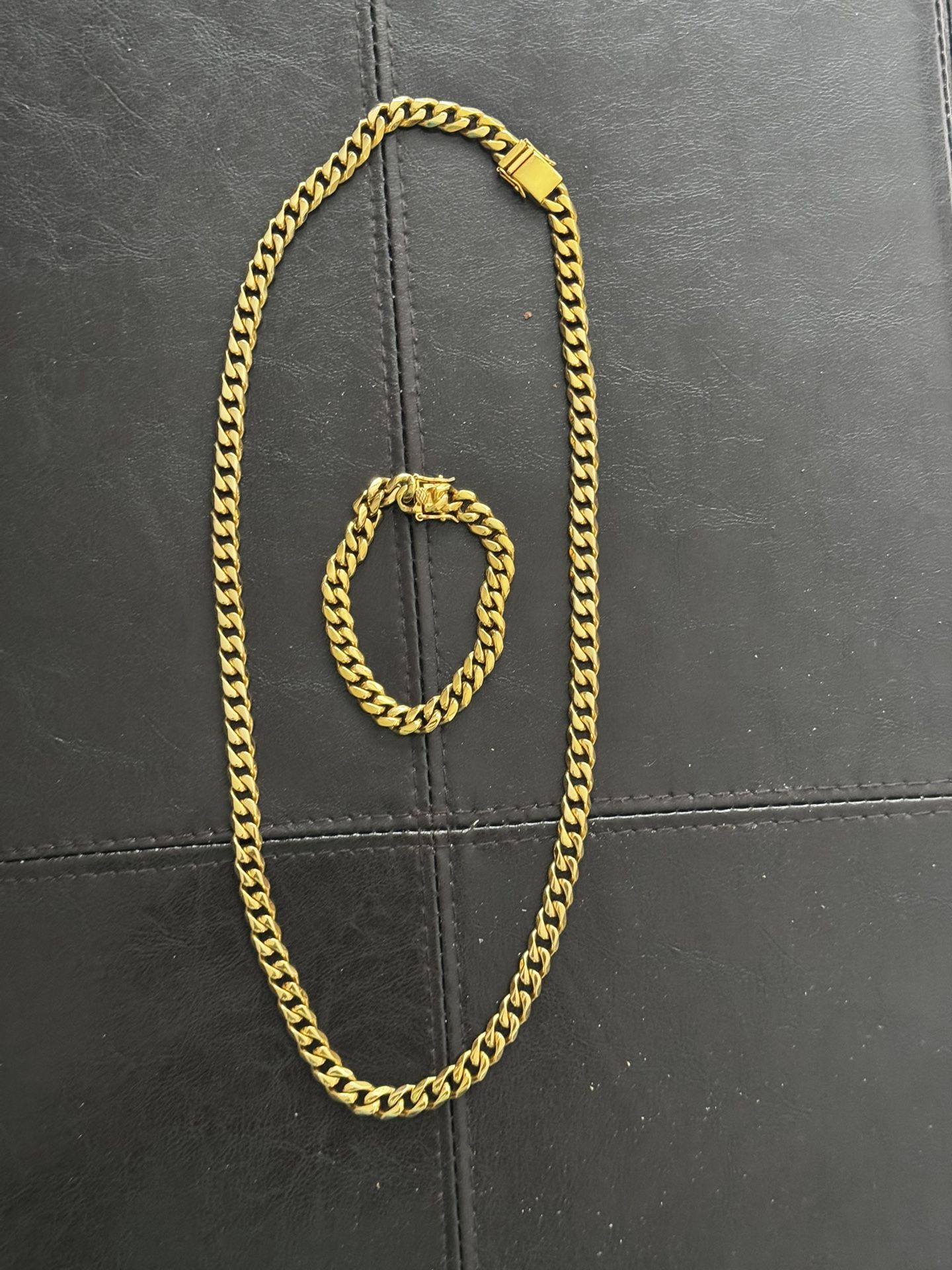 chain and bracelet. Long 30” . Stanley steel. Used in good condition