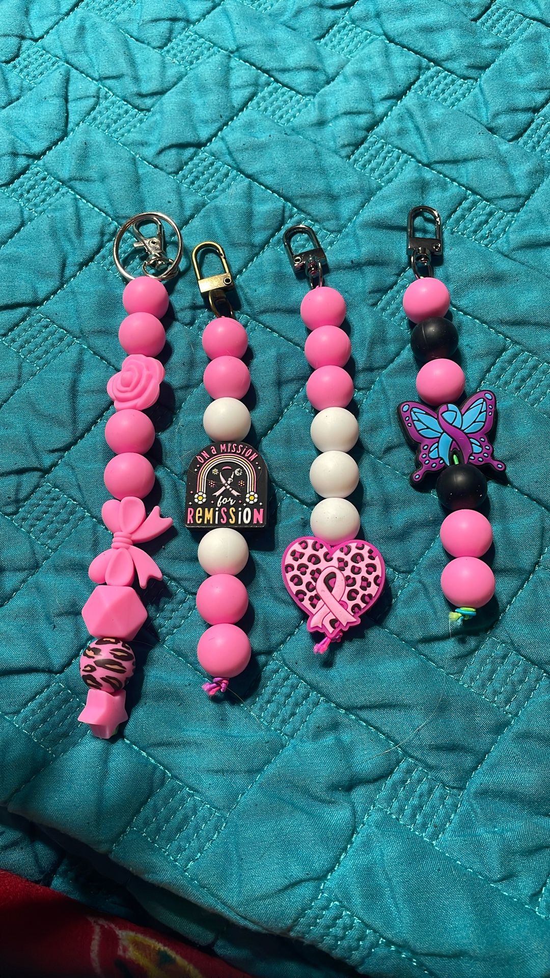 made by 7 year old skylar who loves to craft and is trying to start a small business. wanna support her let us know she would appreciate it coming from a smoke free home. these are nice silicone beads and charms and stretchy. pu would be in south philly can ship for additional fee. they are 4 each or but 4 get 5 th free great for little gifts