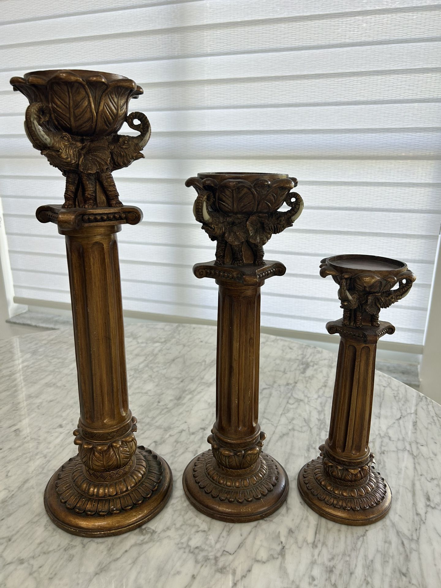 Elephant Pillar Centerpiece Candle Holder Set of 3