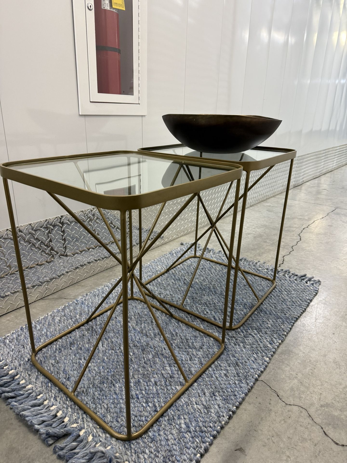 2 Brass End Tables with Glass Tops. Originally purchased for $369/each. Now selling for $150/each. We sold our house and no longer need much of the furniture .