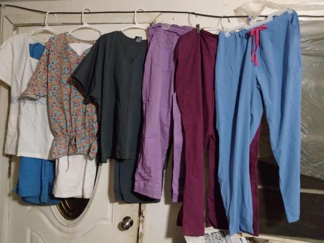 Lightly used scrubs sets $20 only worn a handful of times. Single tops or bottoms $6 each size 2x and xl (both fit size 18)