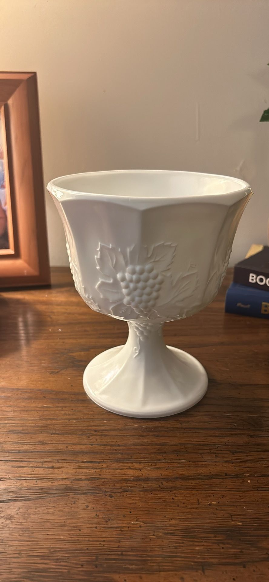 Vintage Indiana Glass Colony Harvest Grape Milk Glass Pedestal Compote Bowl
