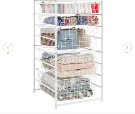 34.76 in. H x 17.13 in. W White Steel 5-Drawer Close Mesh Wire Basket