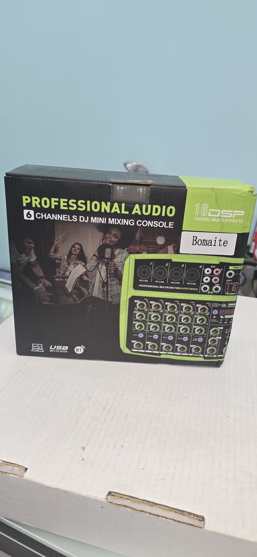 Bomaite 6 Channel Portable Digital Audio Mixer Console with Sound Card, Bluetooth, USB, 48V Phantom Power for Computer Recording, Bands.