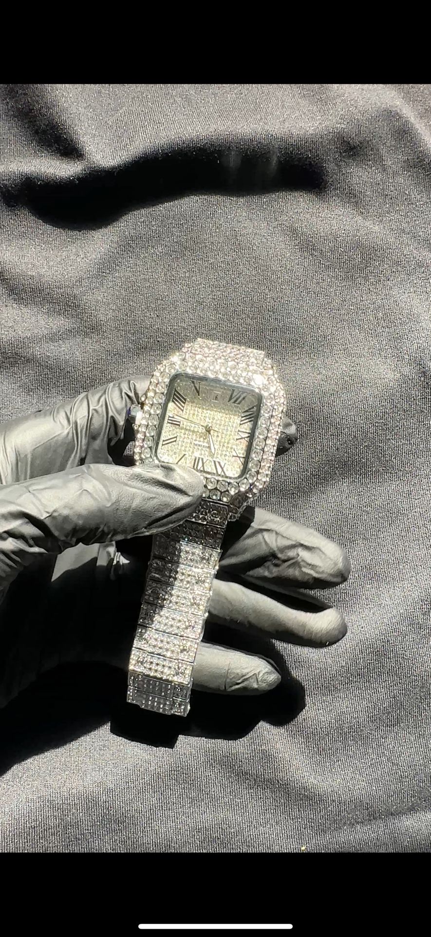 Catching light from every angle! Selling my iced-out Santos-style watch. If you want that high-end look without the $30k price tag, this is it. ✅ Passes Diamond Tester ✅ Solid Weight & Feel ✅ Everything functions perfectly No box included. Priced to sell fast. Pickup only in [NJ&NYC]. First come, first served!