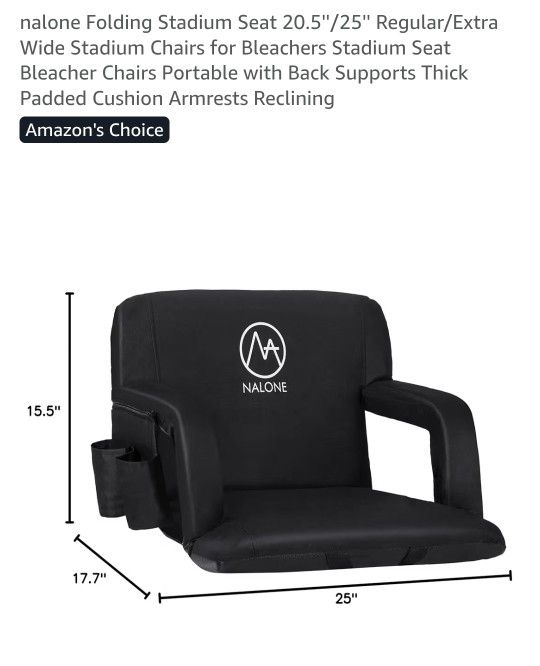 Black bleacher chair. Weight limit is 400 pounds. I have 2 avaliable brand new. Cash only. Pick up only. $50 each chair.
