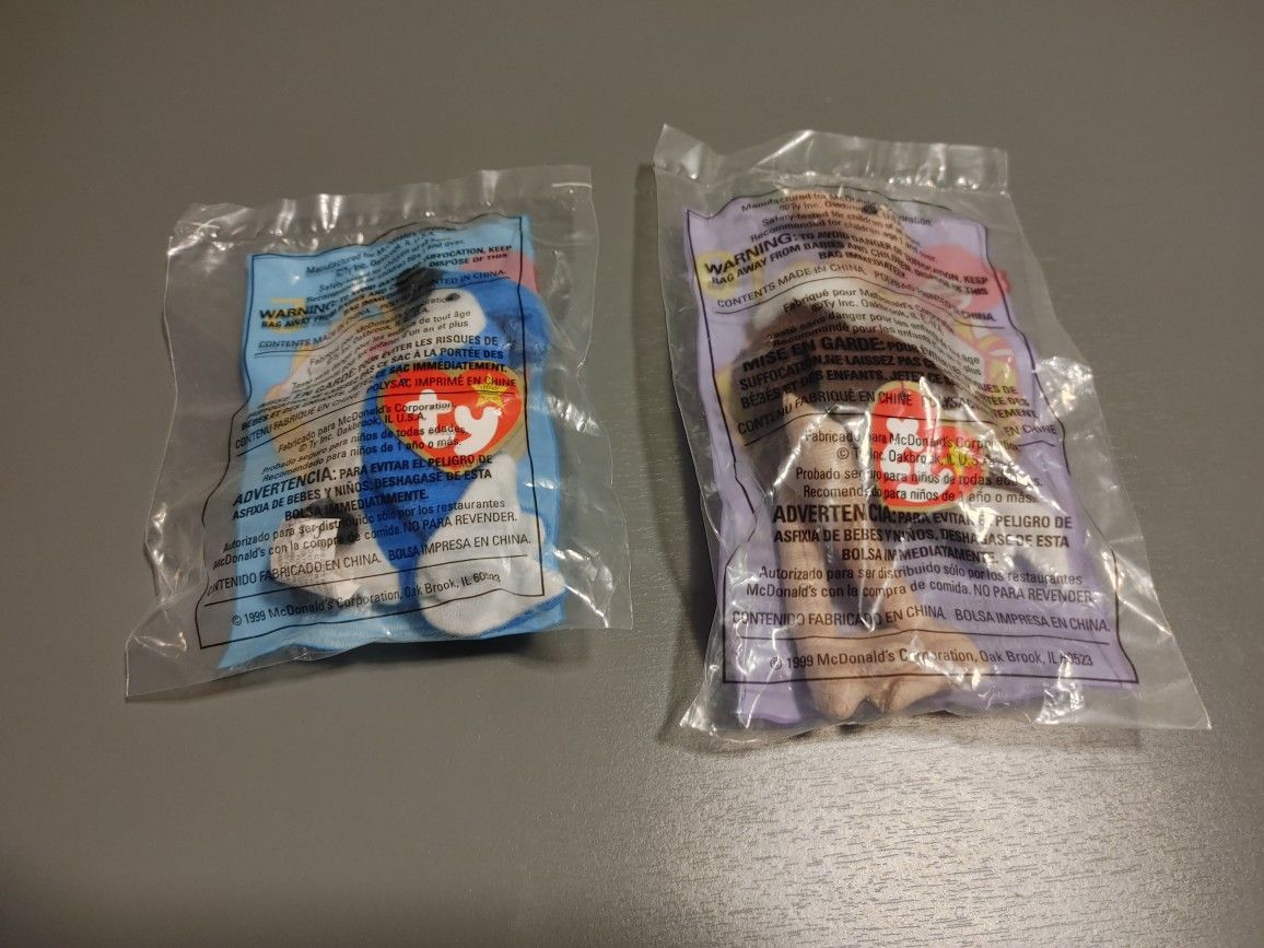 Rare McDonald's Mini Beanie Babies Numbers 5, Rocket the blue jay and 10, Stretchy the ostrich. Never been opened. Mint condition.