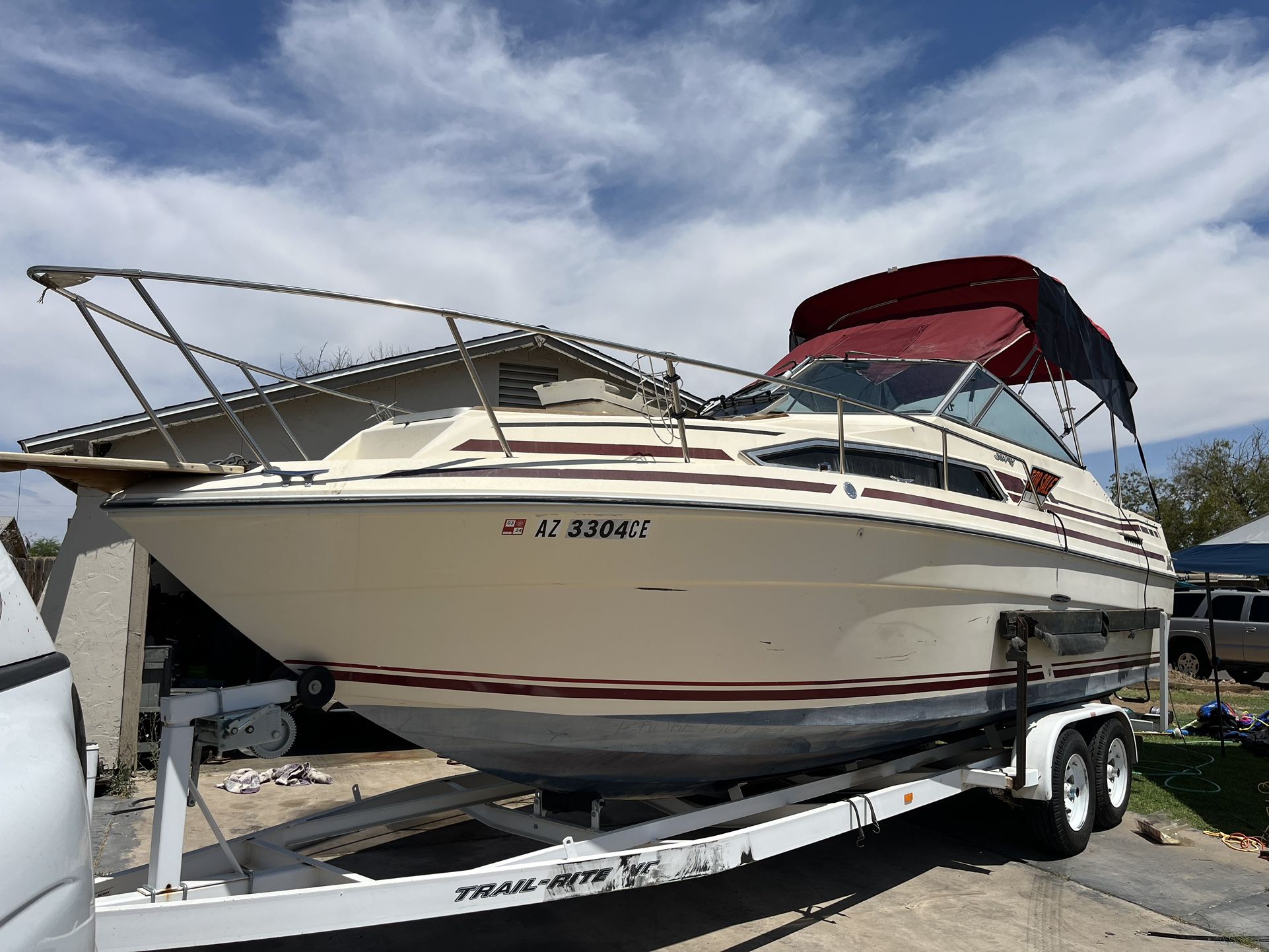 Selling my 1984 Searay. Single 350 V8 engine runs good. Lower deck has kitchen, bathroom, 2 beds, table and a fridge. Just had it on the lake earlier this year before tags ran out. Have title for both boat and trailer. Trailer tires basically new. Have videos and more pics available upon request Asking price is 7500 obo