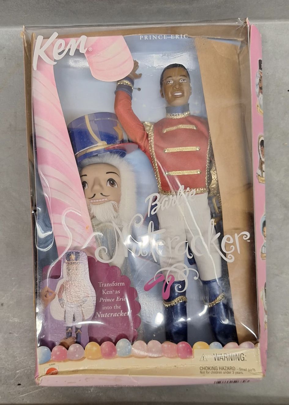 New in box! Barbie Nutcracker Ken doll with Prince Eric and nutcracker costume. Box has some damage.