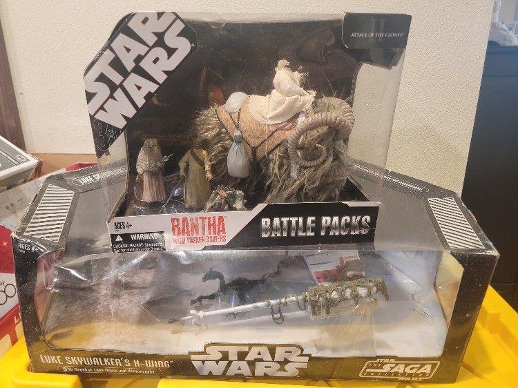 Star Wars saga collection lukes x wing (box damage) and bantha with tusken raiders battle pack (box wear) $155 obo Will possibly trade for vintage Pokemon cards