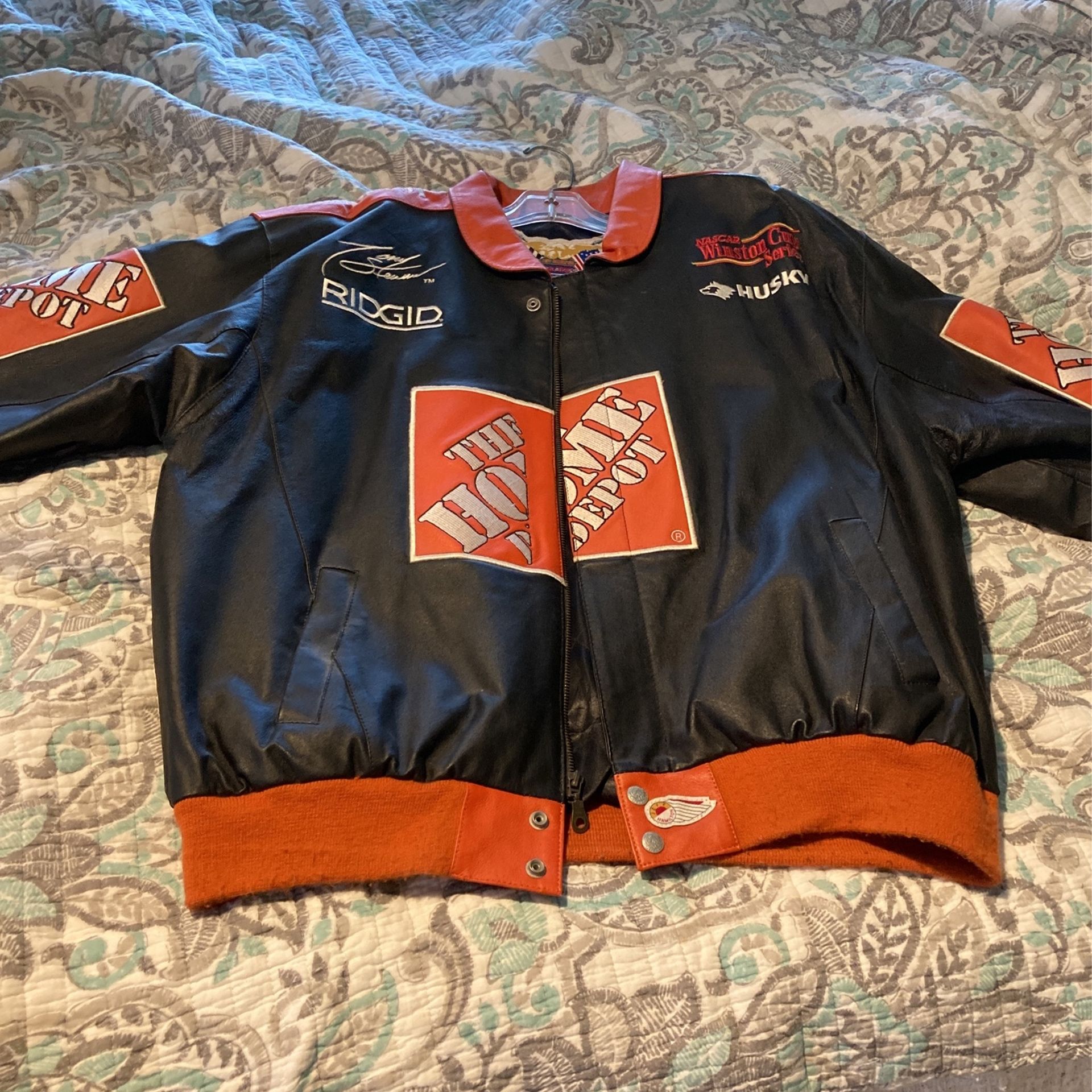 This is a gently used large Tony Stewart Winston Cup Series leather jacket