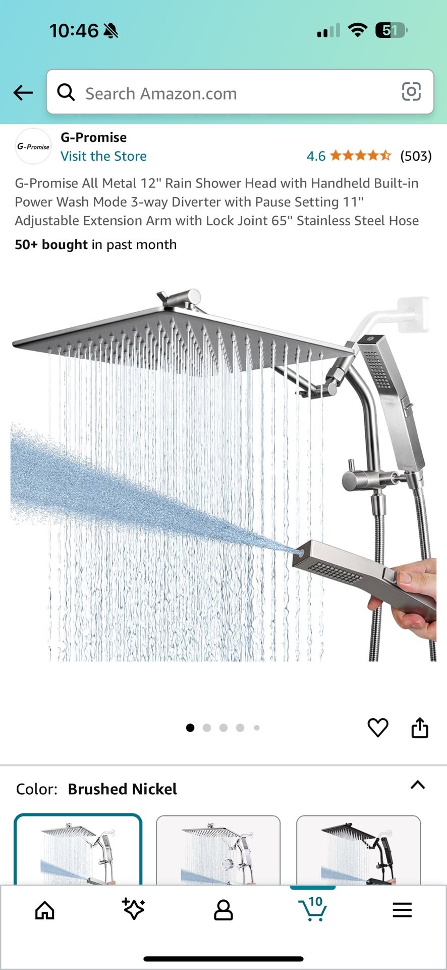 G-Promise All Metal 12'' Rain Shower Head with Handheld Built-in Power Wash Mode 3-way Diverter with Pause Setting 11'' Adjustable Extension Arm with