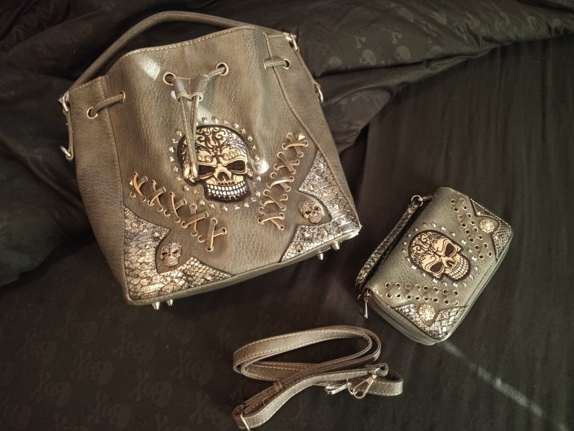 Concealed carry purse with matching wallet. Gray. Only used twice.
