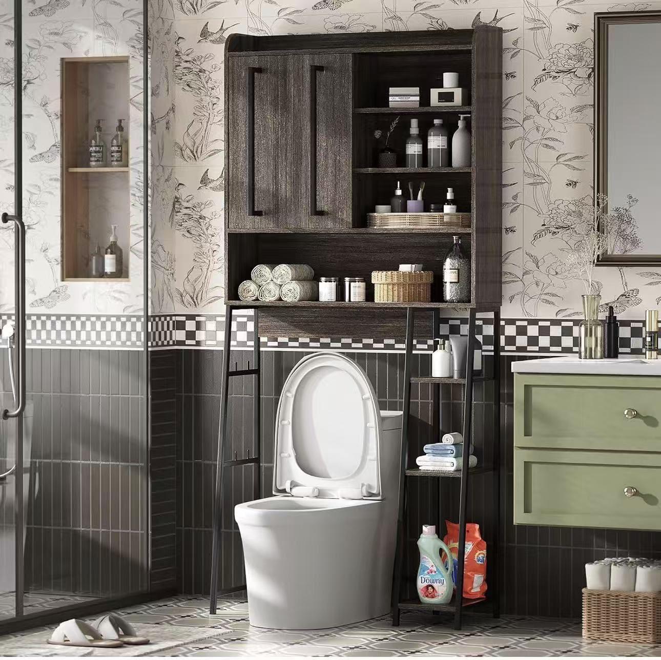VFK Over The Toilet Storage Cabinet with Sliding Door, Farmhouse Bathroom Organizer with Adjustable Shelves for Small Spaces, Sturdy Metal Frame Above Toilet Cabinet,31.5" L x 7.7" W x 66.9" H(F865-A)