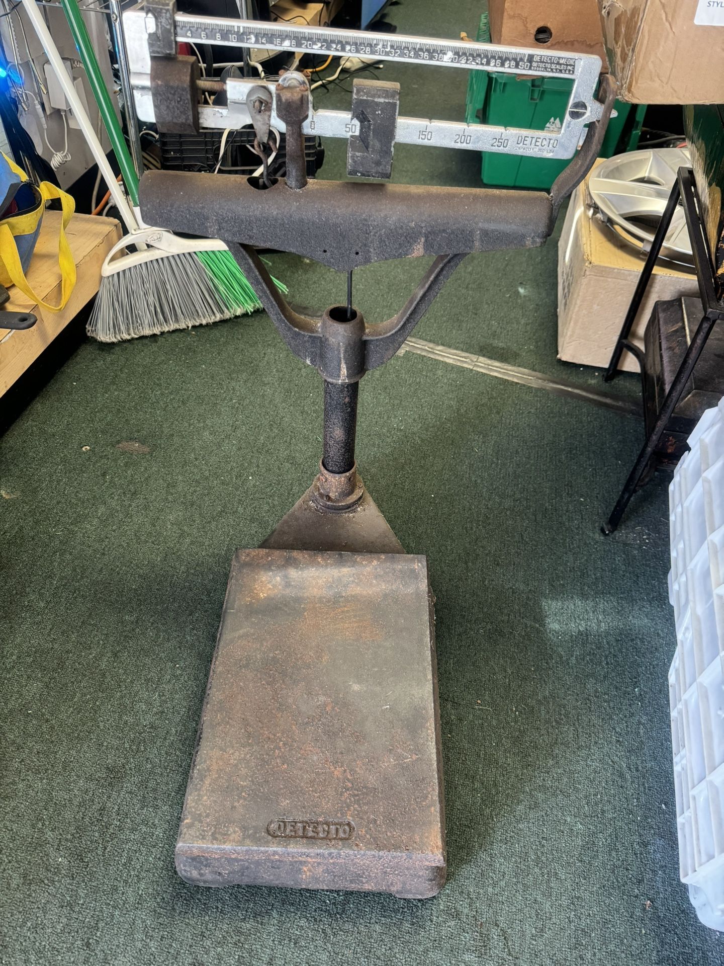 Vintage DETECTO 250 lb Sliding balance General Store Vet Bench Platform Scale