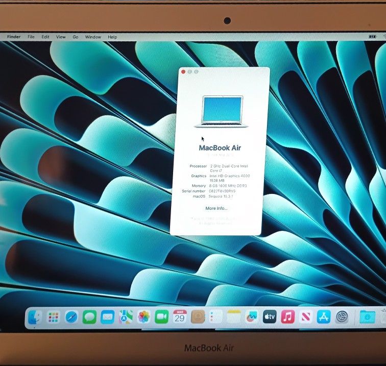 Extremely clean. The battery seems to hold a pretty good charge. But of course, no guarantees. Screen keyboard case everything is very clean. Running Sequoia actually. You can roll back if you want if you know how to. But seems to be running Sequoia smoothly. Fresh image. Pretty peppy for what it is. I was actually torn letting it go, but I can't justify having it. Intel 2ghz DuoCore i7 8 GB RAM 500 GB SSD Must pickup in Clairemont.