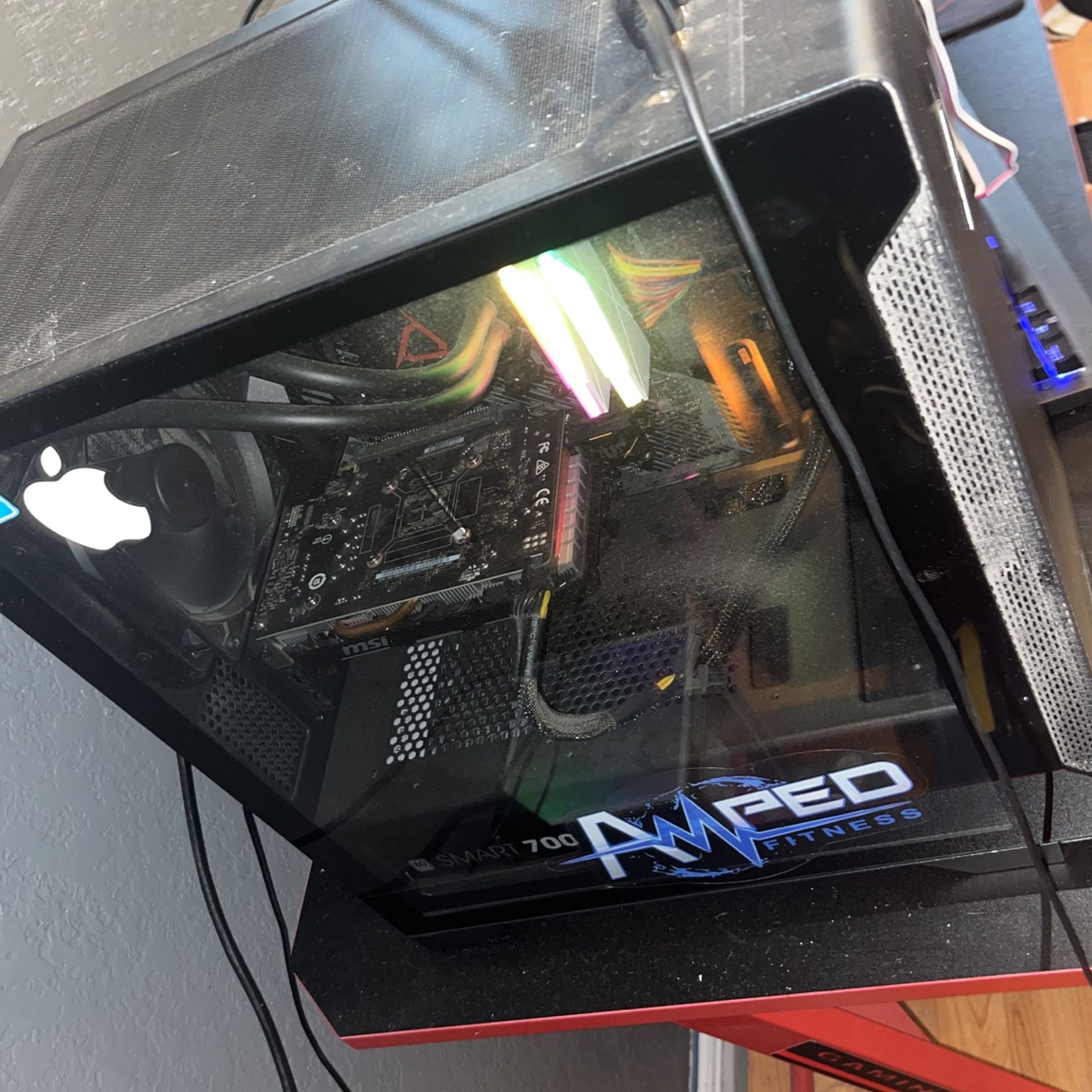 It’s only a year old it was Ryzen seven processor 1650 super graphics card 1 TB of storage A 700 W power supply It’s a 30 inch 200 Hz monitor Comes with the chair and keyboard and mouse and microphone and ps5 control And it’s liquid cooling