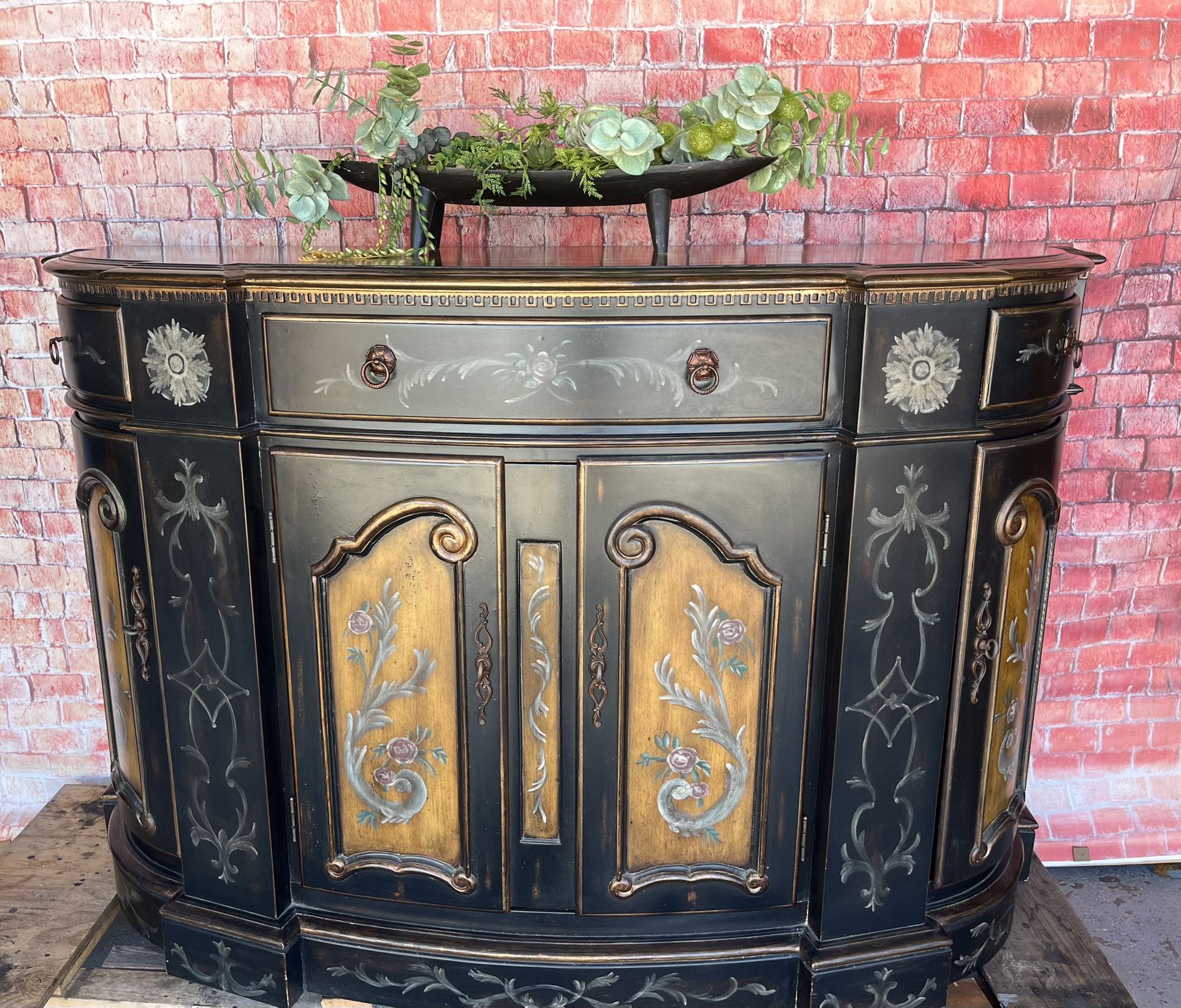 Vintage Buffet Credenza Sideboard Large Paint Decorated Black