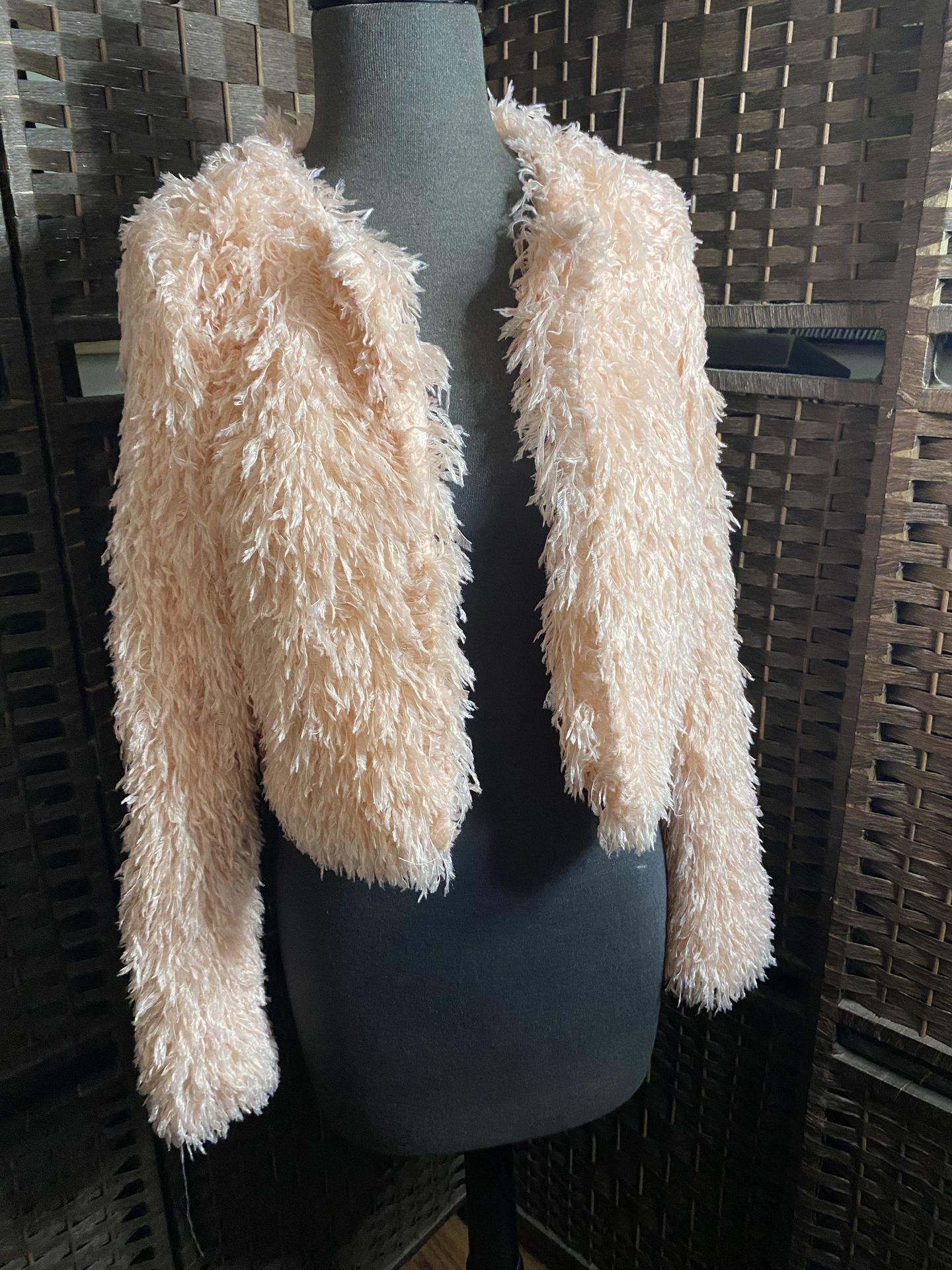 Forever 21 Peachy Blush Faux Fur Cropped Teddy Jacket