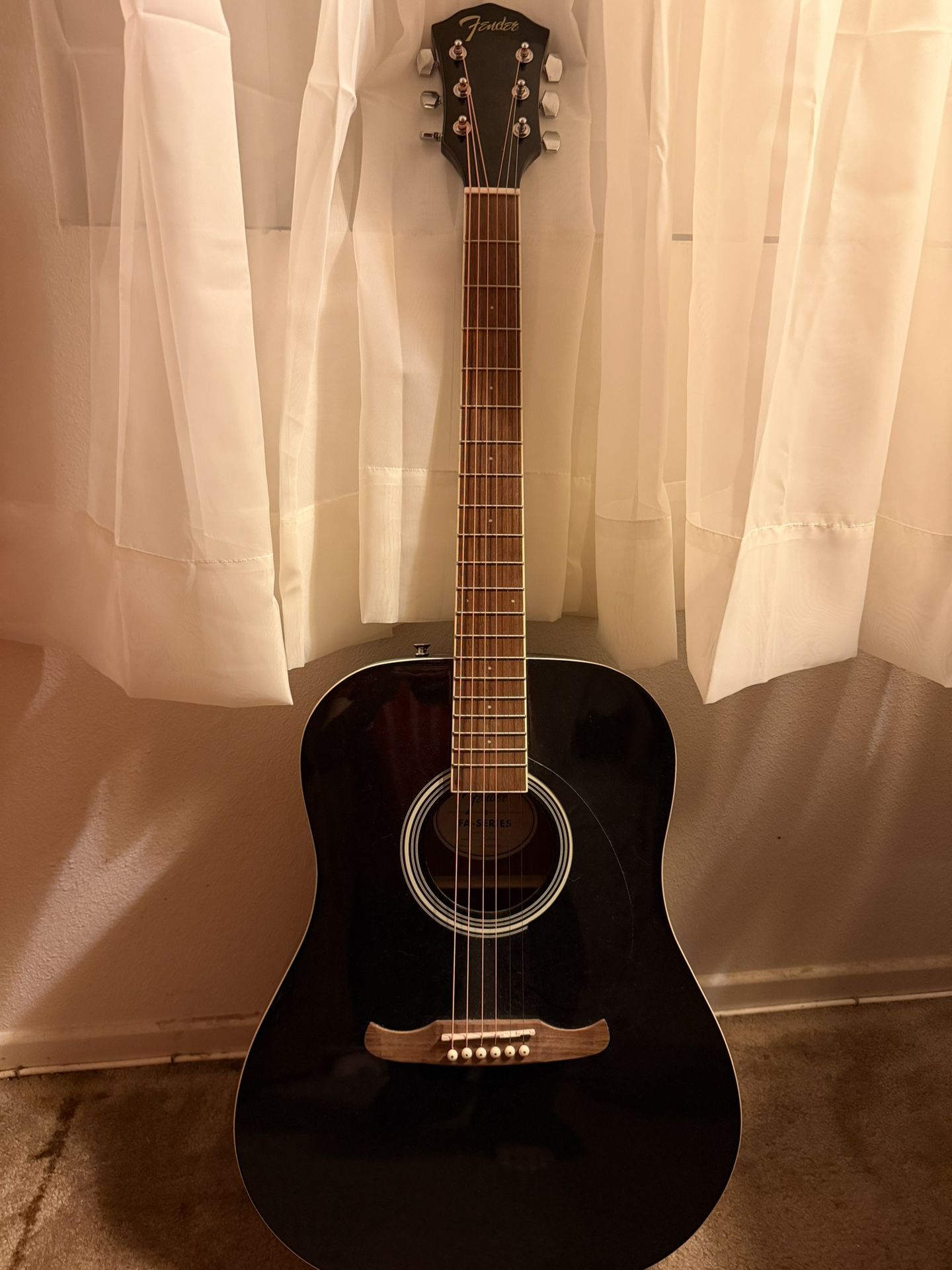 Selling a brand new Fender FA-125 dreadnought acoustic guitar in gloss black. Never used, no scratches, no damage, sounds great and stays in tune. Perfect for beginners, students, or anyone wanting a quality Fender acoustic at a great price. • Full-size dreadnought body • Rich, balanced tone • Smooth fretboard • Chrome tuning machines • Beautiful gloss black finish Retail price is around $150+, asking $120 firm. Local pickup. Message me if interested!