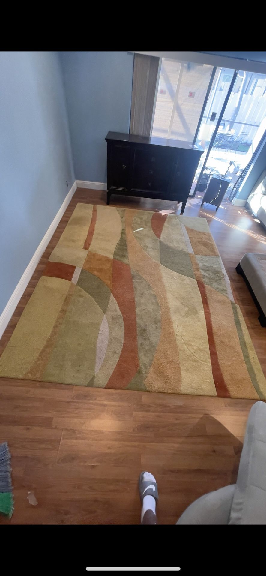 This area rug is in great shape, just needs cleaning. We’ve just replaced our area rug and have no need for this beautiful rug any longer. This was sold new for $700 many years ago.