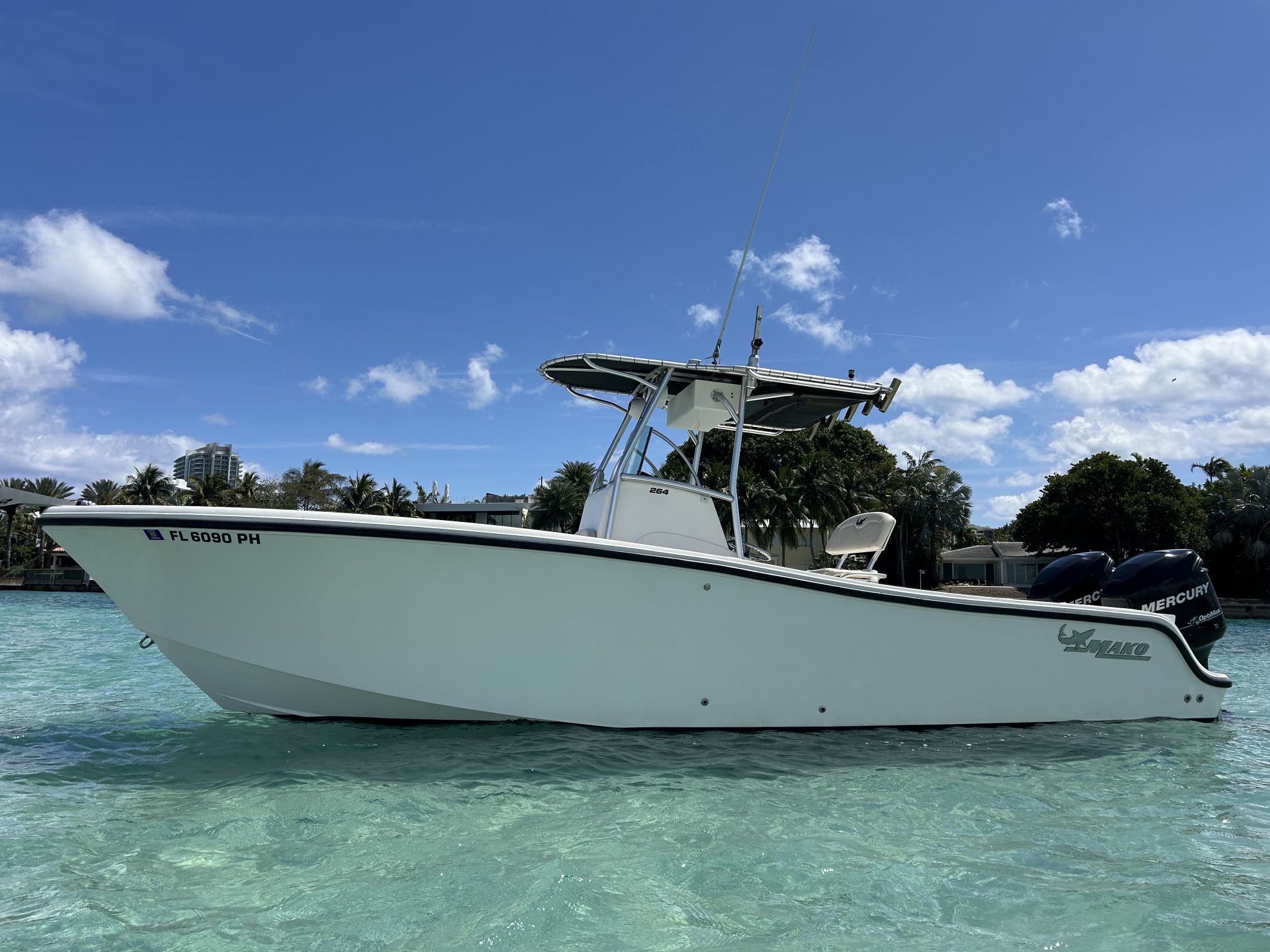 Exceptionally maintained 2007 Mako 264 Center Console is turn-key. Powered with twin 2006 Mercury Optimax 200HP engines (956 hours). Boat has never been fished on and mostly used for Bahamas trips. The Mako brand is known for great offshore capability, has 9’2” beam with 20” draft, deep V hull design and a large 192 gallon aluminum fuel tank. Not interested in brokering. - JL Audio MediaMaster 50 with JL speakers -Garmin 720s Chartotter/transducer -T-Top with Electronics box, Taco Marine Tele-Outriggers(brand new), welded rod holders -Updated upholstery -Wrap-around coaming bolsters -Dual Rule Gold series bilge pumps with Rule Super Switches -Bennet trim tabs -Engines fully serviced(04/25) -New Optima Blue top batteries -Bottom painted with Interlux Micron CSC (04/25) -NO TRAILER