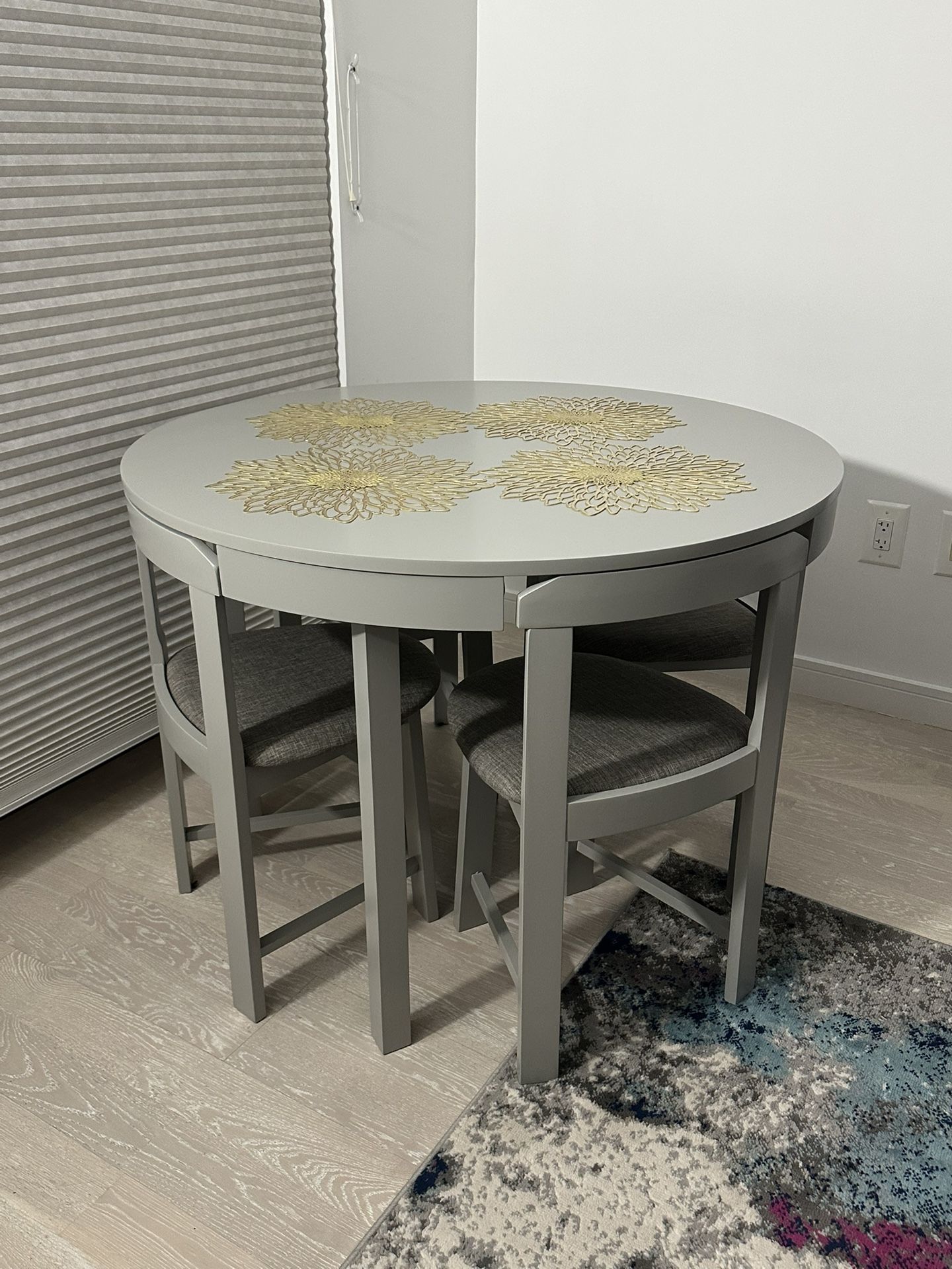 Compact 5 piece dining set - great for small spaces. Round Table plus 4 chairs that fit inside the table. 2 years old, rarely used. $200 OBO