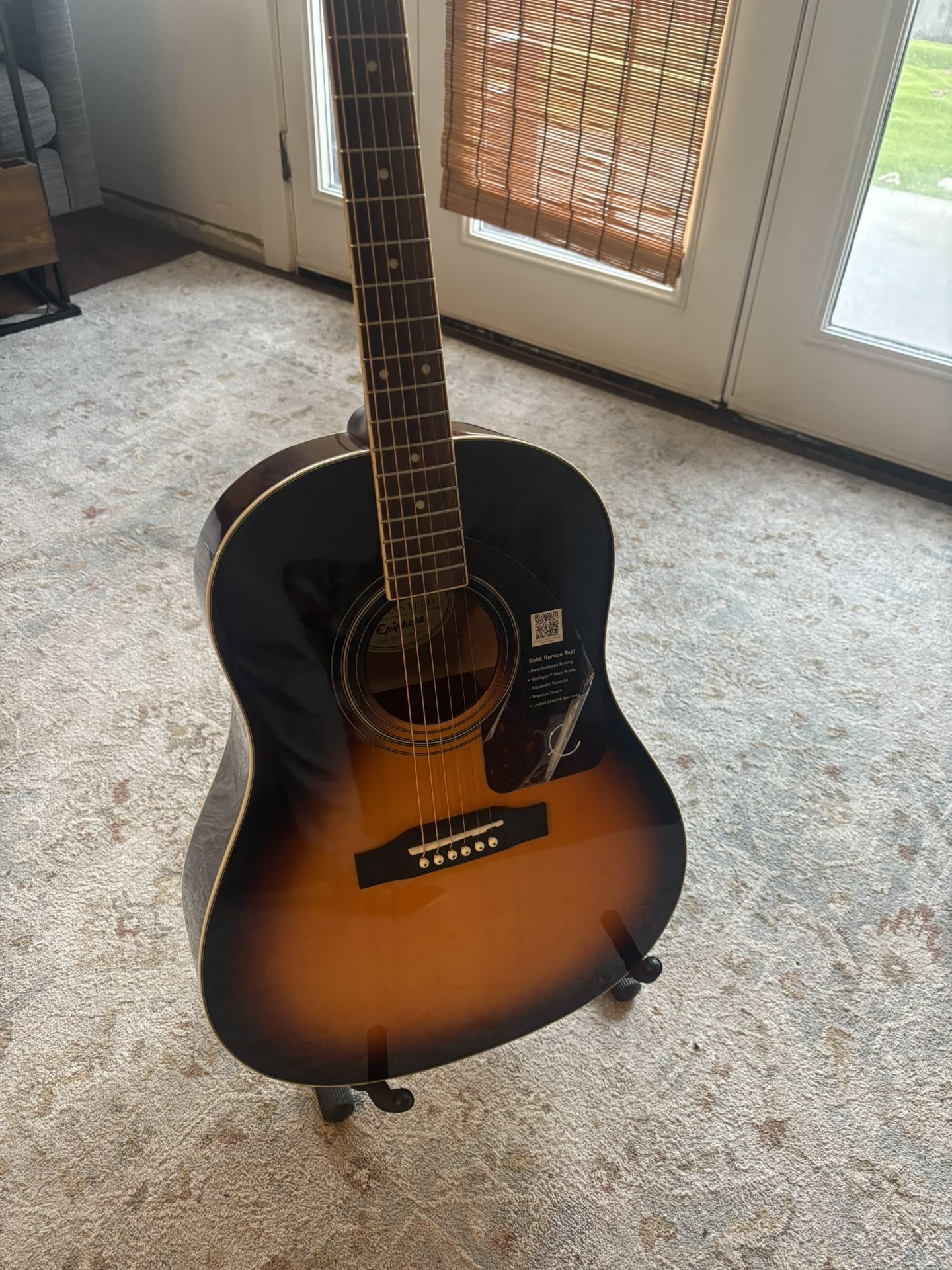 πΈ Epiphone AJ-220S/VS Acoustic Guitar β Like New! πΈ Beautiful Epiphone AJ-220S/VS acoustic guitar in like-new condition. The protective film is still on the pickguard β barely played! Only flaw is a small ding on the headstock (shown in photos). This guitar has rich tone, great projection, and classic Epiphone build quality. Perfect for beginners, hobby players, or anyone wanting a reliable acoustic with great sound and style. β Solid Sitka spruce top β Mahogany back & sides β SlimTaper neck for comfortable playing β Gloss vintage sunburst finish Pickup in Encinitas Cash or Venmo accepted. Keywords: Epiphone AJ-220S, Epiphone acoustic guitar, AJ220S, acoustic guitar, Epiphone VS, vintage sunburst, solid top guitar, beginner guitar, dreadnought guitar, guitar for sale, Epiphone AJ220, Epiphone acoustic